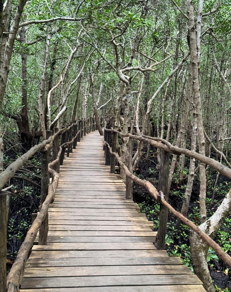 Jozani it’s located in the center of Zanzibar it’s island’s most important natural reserves it’s home to a unique species called red colobus monkeys the forest offering several walking trails to see the forest plants and wildlife you can do walk in mangrove forest